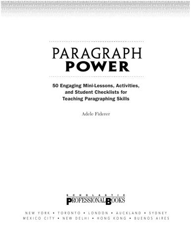 آدل فیدرر، نویسنده پرفروش، مجموعه ای از درس های کوچک را برای کمک به دانش آموزان ارائه می دهد. از نوشتن یک پاراگراف به ساخت قطعات چند پاراگراف حرکت کنید. هر درس کوچک، عنصر مهمی از پاراگراف نویسی خوب را معرفی می کند، مانند ساختن موضوع و جملات بدنی که مشتاقانه هستند، نوشتن انتقال های صاف و پاراگراف بندی گفتگو. شامل مدلهای دانشآموز فوقالعاده جمعآوریشده از حرفه طولانی نویسنده به عنوان معلم کلاس درس است.
