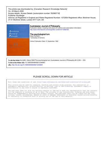 برای استناد به این مقاله Kornblith, Hilary (1982)’The psychological turn’,Australasian Journal of Philosophy,60:3,238 — 2538 — 253