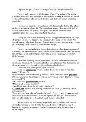 تحلیل سبکی متن یک فنجان چای اثر کاترین منسفیلد |