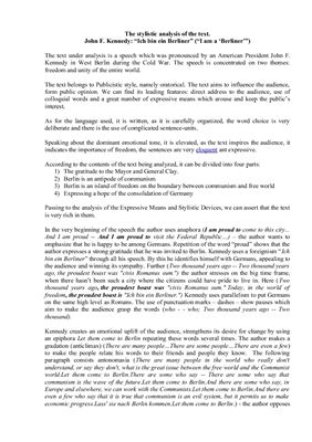 تحلیل سبکی متن. جان اف کندی: Ich bin ein Berliner (من یک برلینی هستم) |