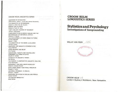 عنوان اصلی Stylistics and Psychology: Investigations of Foregrounding