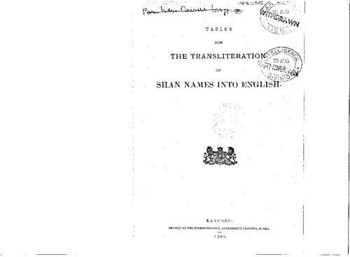 خرید و دانلود نسخه کامل کتاب Tables for the transliteration of Shan names into English