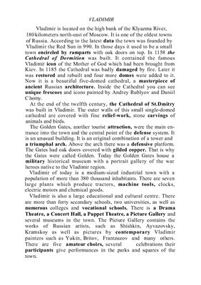 موضوع: “Vladimir” به انگلیسی. داستانی در مورد موقعیت جغرافیایی، دیدنی های شهر.