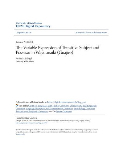 خرید و دانلود نسخه کامل کتاب The Variable Expression of Transitive Subject and Possessor in Wayuunaiki (Guajiro)