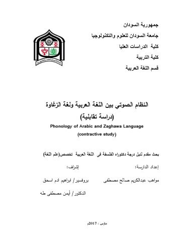 محقق به این مبحث تحت عنوان نظام آوایی زبان عربی و زبان زاغوا (بررسی تقابلی) پرداخته است که در موارد زیر خلاصه می شود: اول: مقدمه ای بر اهمیت واج شناسی در زبان عربی. که در آن دلایل انتخاب آواهای زبان قوم ((زاغوا)) برای تقابل آن با زبان کلاسیک را بیان کردم. ثانیاً: تعریف صوت از نظر زبانی و اصطلاحی، روشن ساختن فواید خاص زبانی و اجتماعی مطالعات آوایی و ذکر فواید کلی تحصیل آواهای عربی با ذکر ویژگی های آنها و روشن شدن خروجی های آنها. سوم: ارائه پیشینه تاریخی در مورد زاغاوا، محل استقرار آنها در سودان، آداب و سنن آنها، فرهنگ آنها و فعالیت های اقتصادی، اجتماعی و سیاسی آنها. چهارم: صحبت از زمینه های توافق و اختلاف در آواهای زبان بین عربی و زبان زاغوا. پنجم: ثبت نتایج تحقیق و توصیه هایی که محقق امیدوار است به مراقبت، مراقبت و پذیرش توسط مراجع ذیصلاح در دانشگاه دست یابد.
