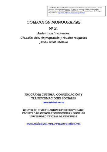 | عنوان اصلی | Andes trans/nacionales. Globalización, (in)migración y rituales religiosos |
