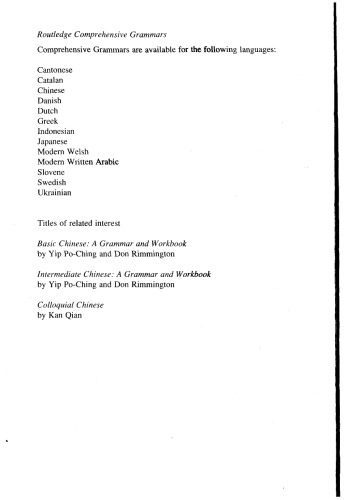 چینی: یک گرامر جامع یک راهنمای مرجع کامل برای دستور زبان چینی است. این یک توصیف تازه و قابل دسترس از زبان، با تمرکز بر الگوهای واقعی استفاده در چینی مدرن است.