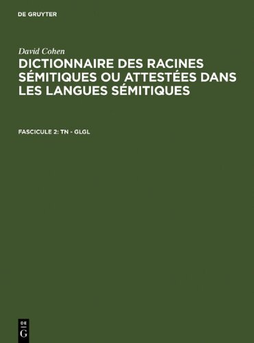 خرید و دانلود نسخه کامل کتاب Dictionnaire des racines sémitiques ou attestées dans les langues sémitiques; Fascicule 2 TN – GLGL