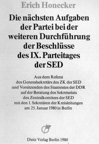 | عنوان اصلی | Die nächsten Aufgaben der Partei bei der weiteren Durchführung der Beschlüsse des IX. Parteitages der SED |