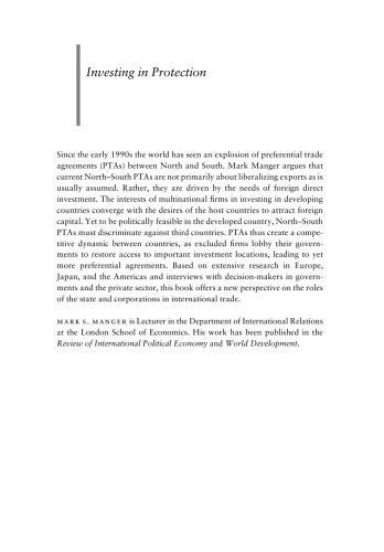 از اوایل دهه 1990، جهان شاهد انفجار قراردادهای تجاری ترجیحی (PTA) بین شمال و جنوب بوده است. مارک منگر استدلال میکند که PTAهای فعلی شمال-جنوب، آنطور که معمولاً فرض میشود، اساساً در مورد آزادسازی صادرات نیستند. بلکه بر اساس نیازهای سرمایه گذاری مستقیم خارجی هدایت می شوند. منافع شرکت های چند ملیتی در سرمایه گذاری در کشورهای در حال توسعه با تمایلات کشورهای میزبان برای جذب سرمایه خارجی همگرا می شود. با این حال، برای اینکه از نظر سیاسی در کشور توسعه یافته امکان پذیر باشد، PTA های شمال-جنوب باید علیه کشورهای ثالث تبعیض قائل شوند. بنابراین PTAها یک پویایی رقابتی بین کشورها ایجاد می کنند، زیرا شرکت های حذف شده با دولت های خود لابی می کنند تا دسترسی به مکان های سرمایه گذاری مهم را بازگردانند که منجر به توافق های ترجیحی تر می شود. این کتاب بر اساس تحقیقات گسترده در اروپا، ژاپن و آمریکا و مصاحبه با تصمیم گیرندگان در دولت ها و بخش خصوصی، دیدگاه جدیدی در مورد نقش دولت و شرکت ها در تجارت بین المللی ارائه می دهد.