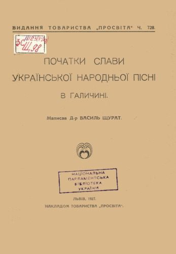 عنوان اصلی Початки слави української народнох пісні в Галичині.