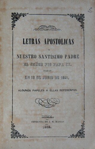 خرید و دانلود نسخه کامل کتاب Letras apostólicas de Nuestro Santísimo Padre el señor Pío Papa IX. Dadas en 10 de junio de 1851, y algunos papeles a ellas referentes