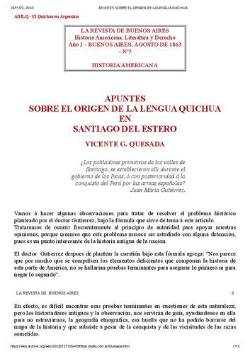 عنوان اصلی Apuntes sobre el origen de la lengua quichua en Santiago del Estero [1863]