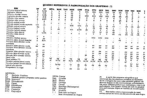 منبع: اولین سمینار استانداردسازی املا در زبان های موزامبیکی، دانشگاه ادواردو موندلین، ماپوتو، 1989.