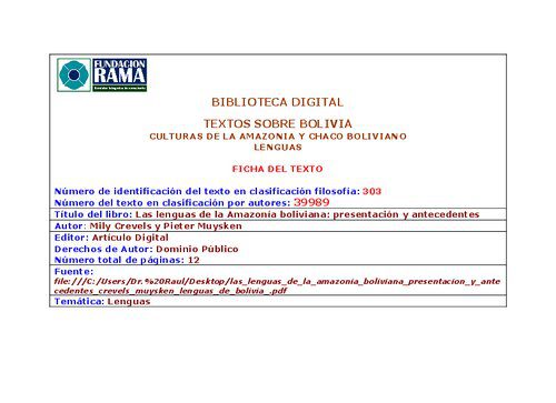 عنوان اصلی Las lenguas de la Amazonía boliviana: presentación y antecedentes