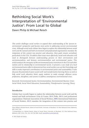 عنوان اصلی Rethinking Social Work’s Interpretation of ’Environmental Justice’ : From Local to Global