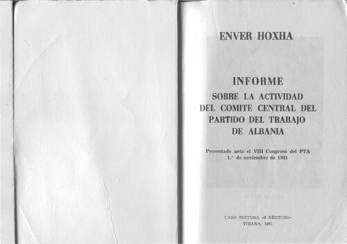 | عنوان اصلی | Informe sobre la actividad del Comite Central del Partido del Trabajao de Albania. Presentado ante el VIII Congreso del PTA 1.º de noviembre de 1981 |