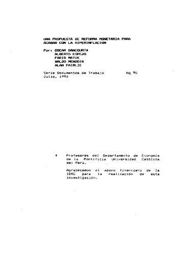 | عنوان اصلی | Una propuesta de reforma monetaria para acabar con la hiperinflación (Perú, julio 1990) |