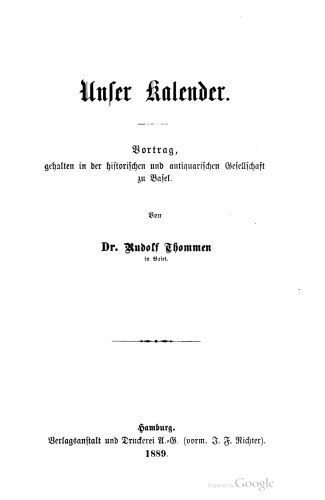 | عنوان اصلی | Unser Kalender. Vortrag, gehalten in der historischen und antiquarischen Geſellſchaft zu Basel |