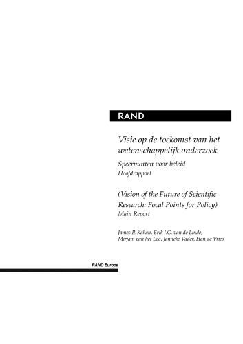 | عنوان اصلی | Visie op de toekonst van het wetenschappelijk onderzoek: speerpunten voor beleid : samenvattingen = Vision of the future of scientific research : focal points for policy : executive summaries |