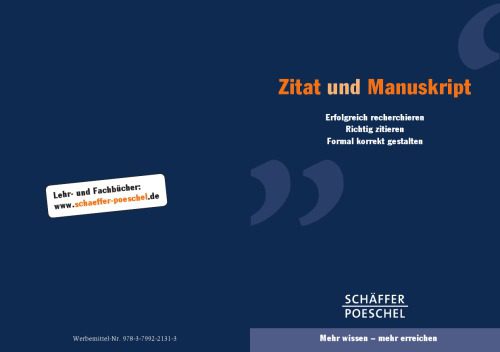 عنوان اصلی Zitat und Manuskript : erfolgreich recherchieren, richtig zitieren, formal korrekt gestalten ; eine praktische Arbeitshilfe zur Erstellung von wirtschaftswissenschaftlichen Arbeiten